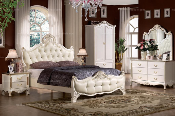 欧式田园 1.8米水晶拉扣双人床 水牛头层真皮床